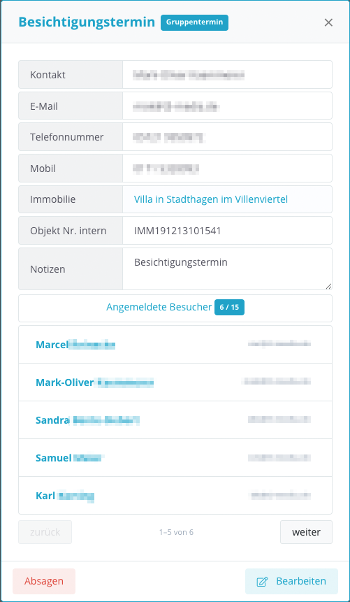 Einen buchbaren Besichtigungstermin erstellen Sie wie einen regulären Besichtigungstermin im Kalender.